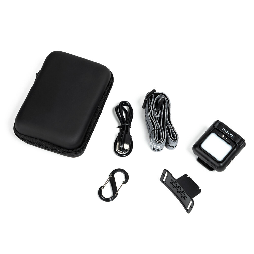 Særdeles fleksibel hodelykt. Har stativ så den kan stå og lyse. Eget LED topplys. Har bevegelsessensor som gjør at du kan spare batteri når du sitter stille. Inkludert polstret oppbevaringseske og karabinkrok.
