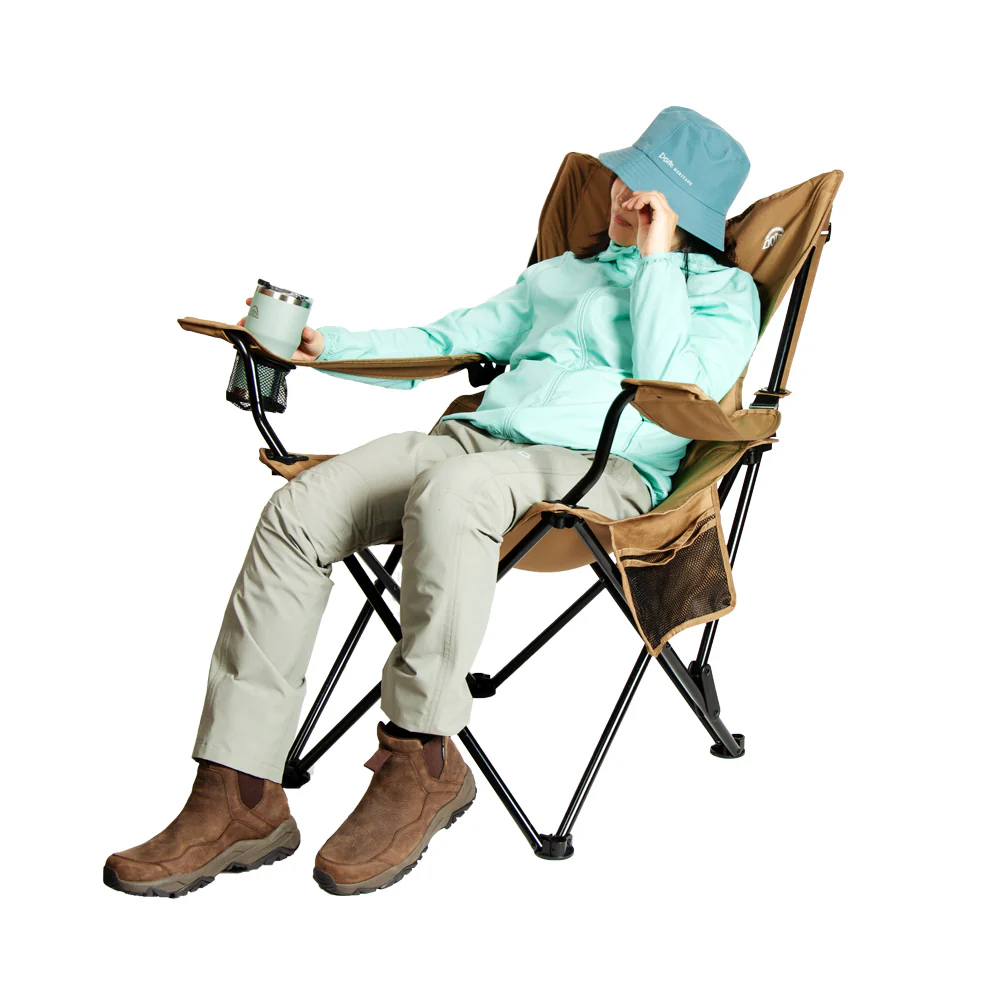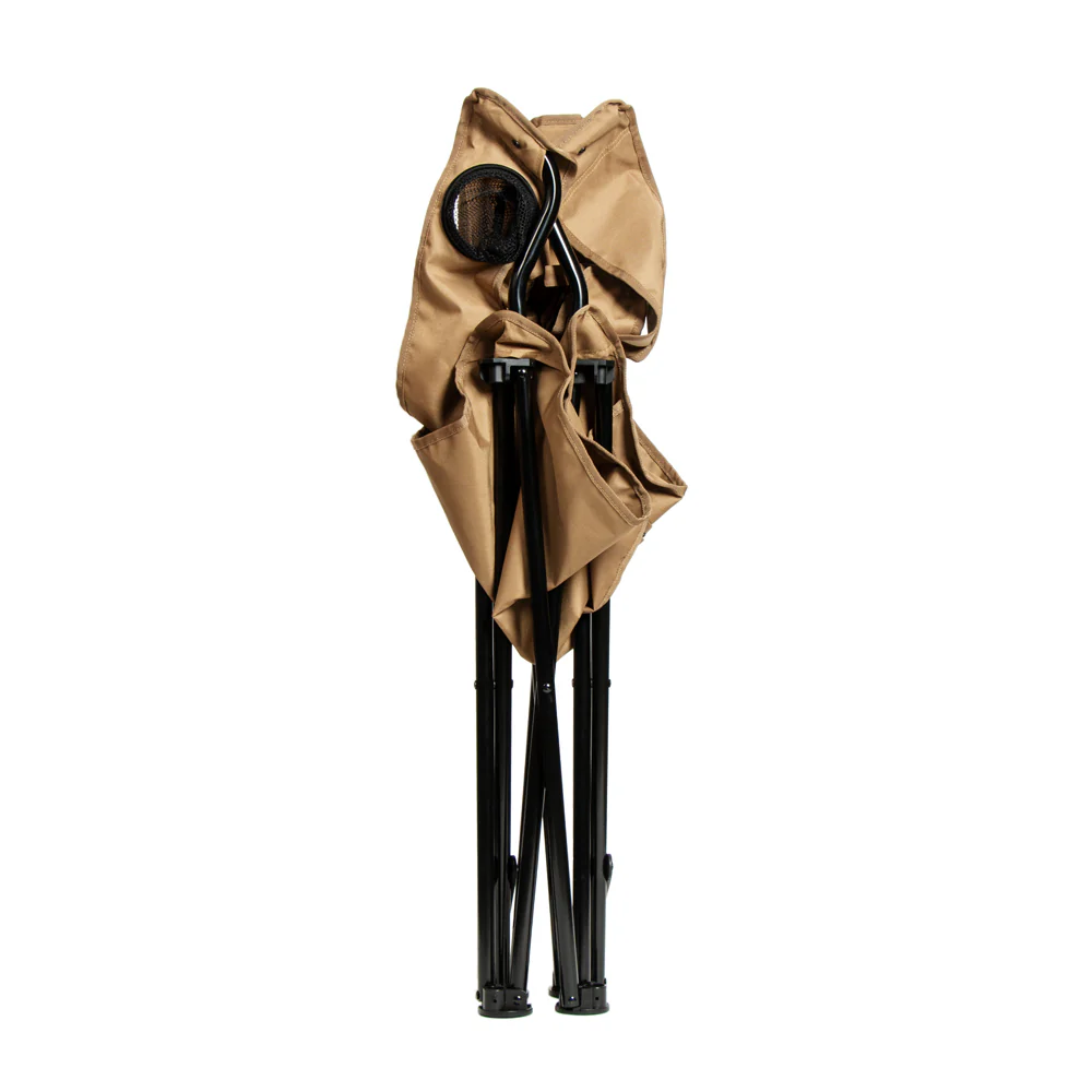 Den solide stålkonstruksjonen gir høy bæreevne, mens slitesterk polyester sørger for lang levetid. Stolen har både koppholder og praktisk sidelomme, og leveres med transportbag.