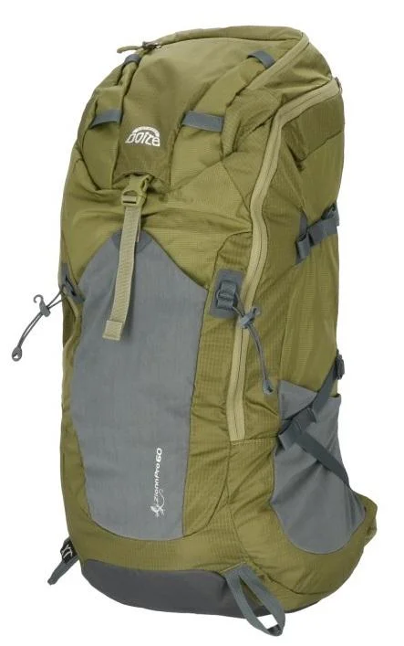 Zionn Pro 60 er en stor og solid tursekk med et moderne og funksjonelt design. En av tingene som gjør denne sekken spesiell, er muligheten til å tilpasse rygglengden etter brukerens høyde, med alternativene S, M og L. Zionn Pro 60 er spesiallaget for å sikre en kjølig og tørr rygg på både kortere og lengre turer og er meget bekvem å bære. Reimsystemet utvendig gjør at du kan feste både sovepose, telt og liggeunderlag og når du ikke har bruk for hele kapasiteten til sekken, kan du komprimere den til det nivået du har behov for. Zionn Pro 60 har to utvendige lommer på sidene til drikkeflasker, isøks, staver, fiskestang etc. Frontlommen på forsiden av sekken er velegnet til hjelm eller jakke/genser når du trenger å ta den raskt av og på. Topplommen er stor og romslig og passer til mobiltelefon, kompass, et ekstra par hansker etc. Den store topplommen rommer fint en ekstra drikkeflaske eller en genser og lue. Selve sekken har bagåpning – som gjør at du kan åpne nær 2/3 deler av sekken og få et overblikk med en gang. Sekken rommer 20 – 25 plagg, litt avhengig av hva du pakker med deg. Det er to festereimer innvendig i sekken, som gjør at du beholder orden i den. I en egen lomme i bunnen av sekken, finner du regntrekket som sørger for at innholdet alltid holder seg tørt. Zionn Pro 60 er sekken som dekker de fleste turgåeres behov på både korte, mellomlange og lange turer. Det er plass både til liggeunderlag, sovepose, telt og nødvendig turutstyr. _________________________________________ #70