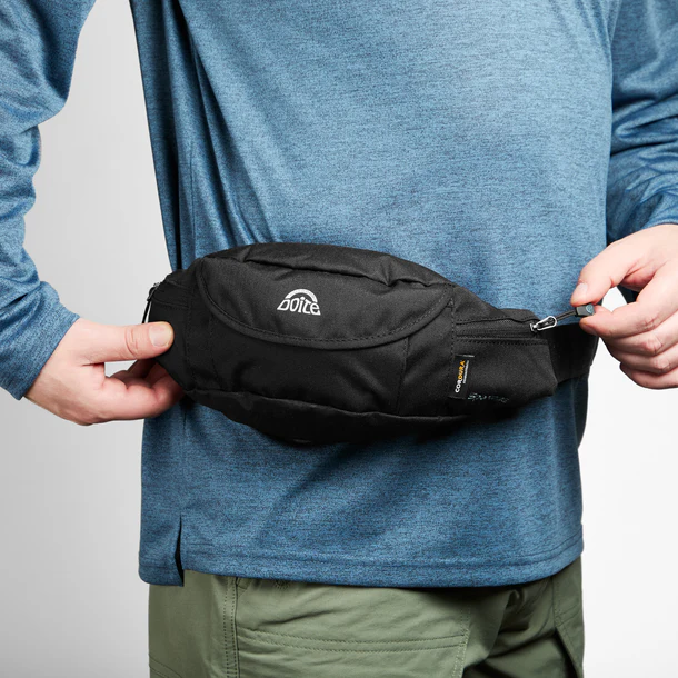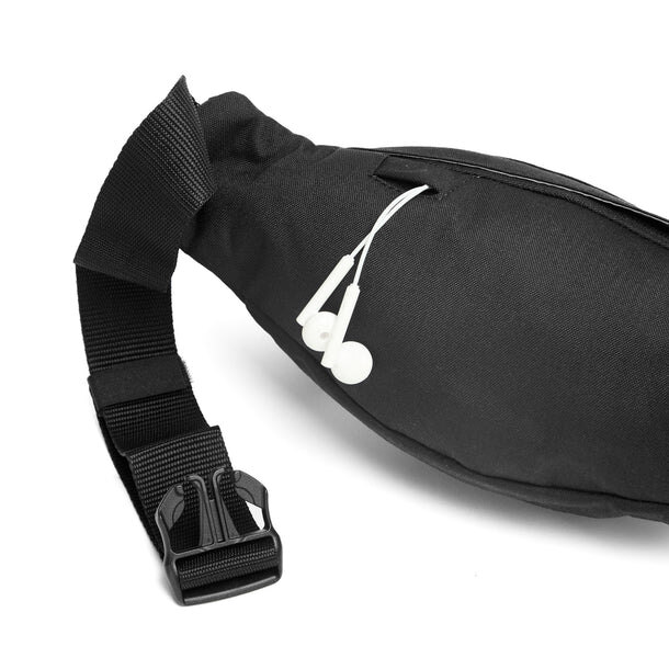 Sportage er en rumpetaske med en lett tilgjening lomme på forsiden som lukkes med borrelås. På hver siden av denne lommen er det tynner lommer som passer bra til energigel på tube eller sykkelverktøy. Videre utover på sidene er det små lommer som en kan ha mynter og nøkler i. Inn mot hoften er hovedrommet som har utgang for hodetelefoner. _________________________________________ #70
