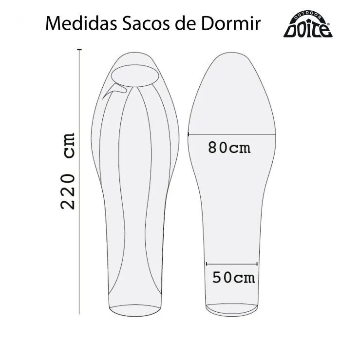 Øverst har soveposen en bredde på 0,8 m og nederst en bredde på 0,5 m. Dette sikrer en behagelig passform som raskt varmer opp luften rundt deg, men likevel gir god bevegelsesfrihet.