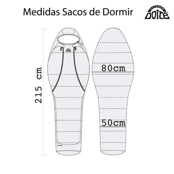 Øverst har soveposen en bredde på 0,8 m og nederst en bredde på 0,5 m. Dette sikrer en behagelig passform som raskt varmer opp luften rundt deg, men likevel gir god bevegelsesfrihet.