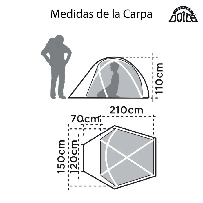 Den mer kompakte modellen i Tolima-serien. Dette er trekkingteltet vårt - spesialdesignet for fjelltur og langvarig vandring. Teltet er perfekt til 2 personer med sin kompakte oppbygging - lengde på 2,8 m, bredde på 1,5 m og en høyde på 1,1 m. Med en vannsøyletetthet på 3000 mm, i tillegg til forseglede sømmer, har dette teltet god beskyttelse mot regn og fuktighet, slik at du kan holde deg tørr og komfortabel på tur. I tillegg har teltet solbeskyttelsen UPF 50+, som beskytter mot nedbrytning av tekstiler og falming, i tillegg til å gi et ekstra lag med beskyttelse for de som oppholder seg inne i teltet, og redusere innetemperaturen når solen står på som verst. Selv i et såpass kompakt telt er det ingen fare for å være i veien for hverandre, siden det er inngang både foran og bak. Det er også et ventilasjonsuttak som sikrer optimal luftsirkulasjon, slik at du kan nyte frisk luft og opprettholde en behagelig atmosfære. Tolima er satt sammen med 3 stenger av aluminiumslegeringen duraluminium slik at det er solid og gjør det enkelt å montere. Det medfølger en transportpose som, i tillegg til teltets lave vekt, gjør det svært enkelt å bære fra sted til sted. _________________________________________ #70