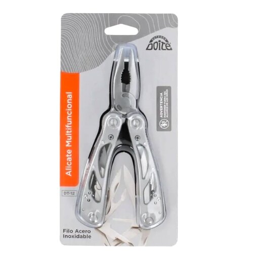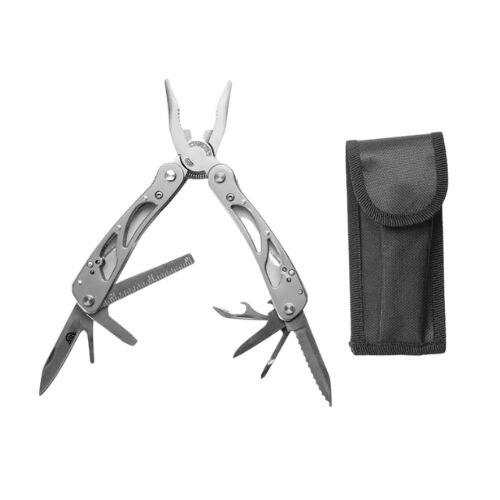 >>PRODUKTVIDEO KOMMER<< – Rustfritt stål. – Multiverktøy. – Kompakt og lett – Inkluderer taske. Funksjoner: 1- Nebbtang. 2- Tang. 3- Kabelkutter. 4- Liten flat skrutrekker. 5- Stor flat skrutrekker. 6- Kniv. 7- Neglfil 8- Linjal 9- Sagtannkniv. 10- Slagkniv. 11- Phillips skrutrekker. 12- Boksåpner. 13- Flaskeåpner. – Total lengde: 17 cm. – Langkant: 7 cm. – Håndtakslengde: 10 cm