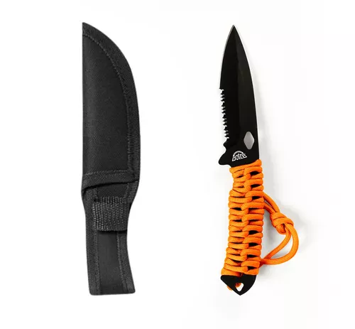 Vår overlevelseskniv er skapt for utfordringer i villmarken. Denne kniven har en skarp og pålitelig klinge i rustfritt stål som takler tøffe oppgaver. I tillegg til sine gode skjære- og kutteegenskaper, har denne kniven en smart funksjon – et overlevelsestau kan enkelt vikles av håndtaket. Dette tillegget gir deg en ekstra ressurs i nødsituasjoner, og kniven blir til et allsidig verktøy som kan hjelpe deg med en rekke overlevelsesoppgaver. Kniven leveres med en praktisk sikkerhetstaske. Med vår overlevelseskniv er du godt forberedt for enhver utfordring naturen måtte by på.